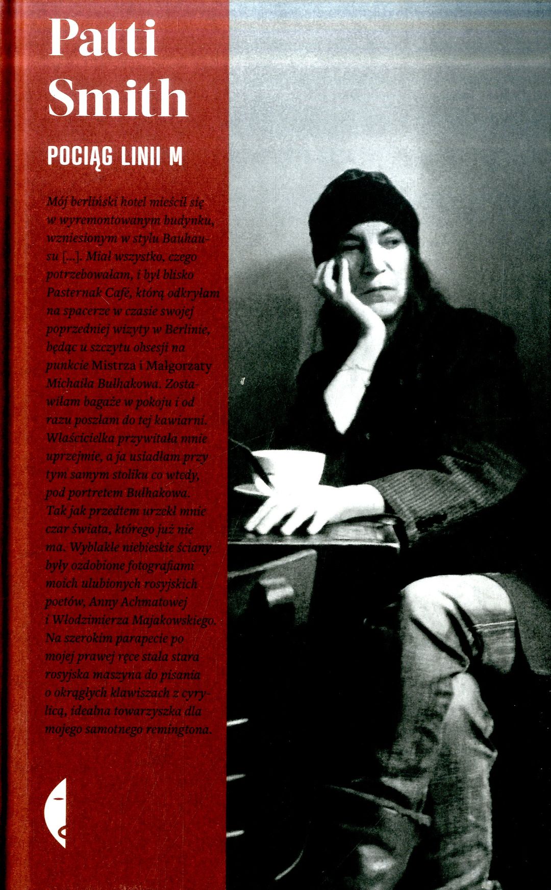 Nowy Jork, Greenwich Village, pierwsza stacja pociągu linii M. Przy stoliku w kawiarni siedzi kobieta. Zawsze zamawia czarną kawę i razowe grzanki z oliwą. To Patti Smith, piosenkarka, poetka, jedna z najważniejszych artystek w historii rocka. Nałogowo opisuje świat wokół: notuje wrażenia z podróży, wspomina bliskich, przytacza anegdoty i wprowadza w świat ulubionych książek. Znana z żywiołowych koncertów, fascynuje pasją życia, otwartością i wrażliwością, nieobce są jej też melancholia i lęk. Jej „Pociąg linii M” kursuje wahadłowo pomiędzy przeszłością a teraźniejszością, między jawą a snem, między fikcją a prawdą, a z kawiarnianych zapisków Patti Smith wyłania się zaskakująco osobisty i spójny portret ikony amerykańskiej popkultury.