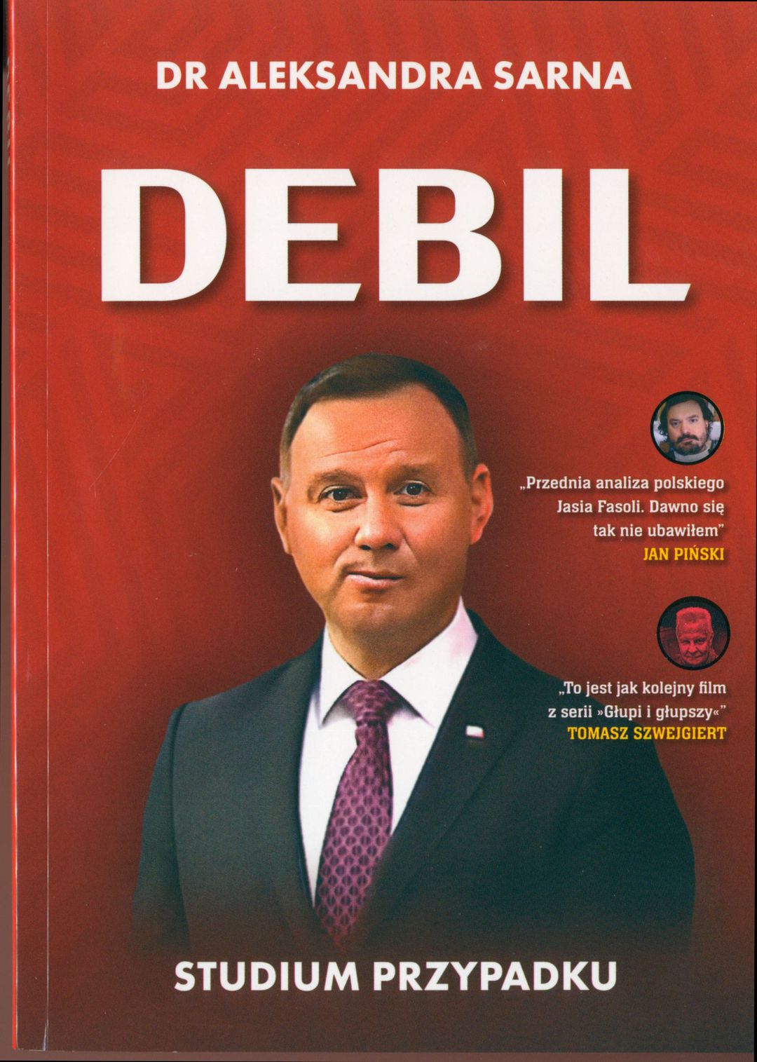 Czy pisarz Jakub Żulczyk miał rację nazywając Andrzeja Dudę „debilem”? Odchodzący prezydent to człowiek-mem, Jaś Fasola polskiej polityki, dwukrotnie dał się nabrać rosyjskim komikom na rozmowę przez telefon. Pisał na X (dawna nazwa Twitter) z użytkownikami „Ruchadło leśne”, „seba sra do chleba”, „dzika foczka”. wystarczyło zdjęcie ładnej kobiety w awatarze i Duda zabierał się za flirtowanie. Przez trzy lata romansował przez internet (przynajmniej!) z Izą Pek, atrakcyjną modelką. Pisali do siebie nocami, gdy Duda żonie mówił iż musi załatwiać „ważne sprawy państwowe”. Innej, pięknej góralce Jolii Rosiek zwierzał się, że nikt go nie rozumie i wszystkiego ma dość. Przy tym wszystkim Duda jest człowiekiem, który uważa się za kogoś wybitnego. Z lubością powtarza słowa o majestacie R-Z-E-C-Z-Y-P-O-S-P-O-L-I-T-E-J, który reprezentuje. Ma pozy jak Mussolinii, ale potrafi też klęczeć przed syryjską mistyczką i smarować się świętym łojem (serio!),wyciekającym z jej rąk. Dr psychologii Aleksandra Sarna zabiera Państwa w unikalną pożegnalną podróż z Debilem. Oby już nigdy więcej. Bo następca, którego wymyślił nam Jarosław Kaczyński jest jeszcze głupszy niż Duda…